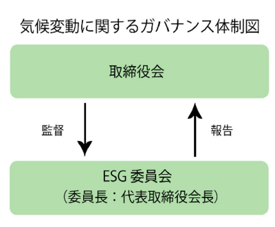 当社は、気候変動を重要な経営課題の一つとして認識しています。当社の取締役会は、気候関連課題に対する最終責任を負っており、気候変動対応を含むサステナビリティに関する事項についてESG委員会より報告を受け、進捗状況を監督し、「総合循環型ビジネスモデル」の展開を図っています。ESG委員会の委員長には、代表取締役会長が就任しています。ESG委員会は、環境管理委員会等より気候関連課題に関する報告を受け、GHG排出量削減やリスクマネジメントなどの課題への取り組みについて、助言・指導してまいります。