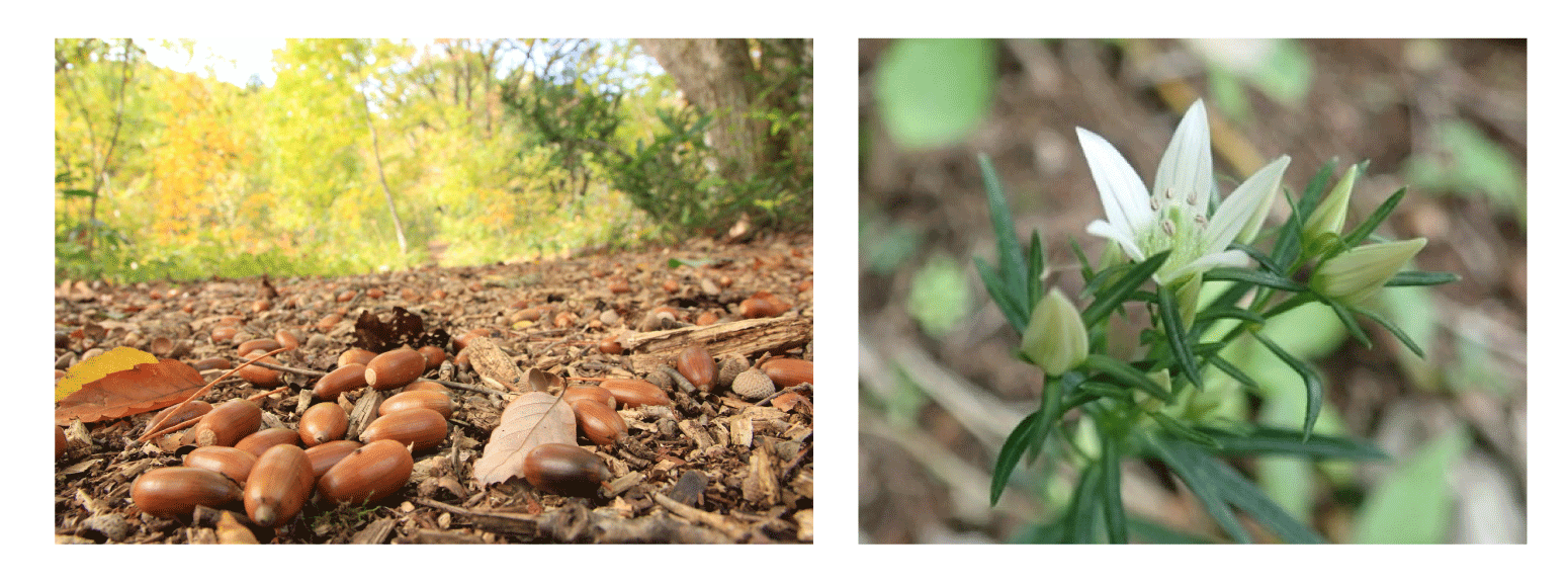 さらに、アファンの森では珍しく、リンドウの仲間の「センブリ」(写真右)が自生しています。センブリは美しい花を咲かせますが、その名前の由来は、「千度振り出しても(煎じても)苦い」というほどの強い苦みにあります。古くから生薬として利用されてきました。