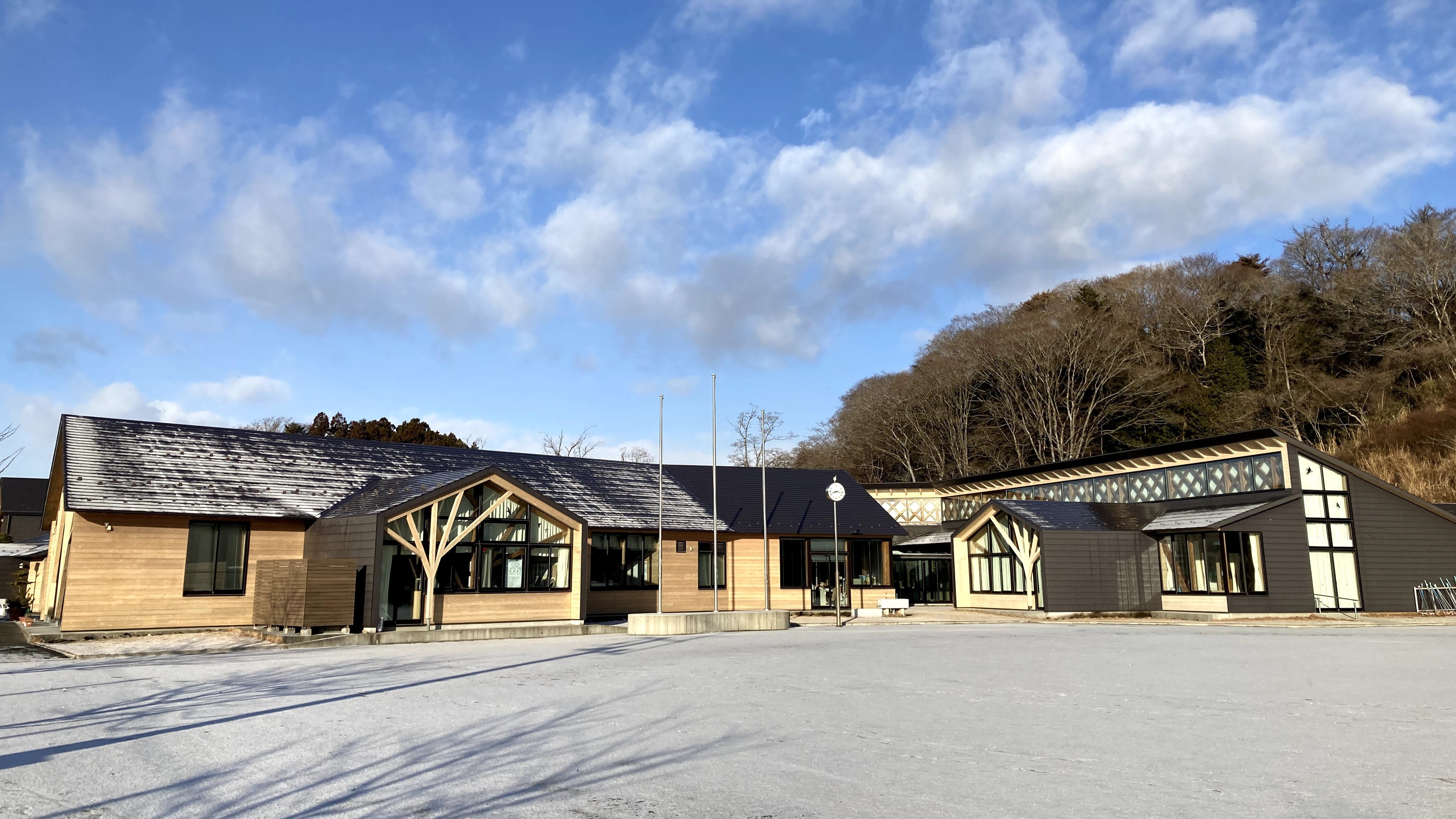 東日本大震災により高台への移転を余儀なくされた宮野森小学校は、アファンの森財団の震災復興プロジェクトにより、「復興の森」を背に建つ、「森の学校」として新たに歩みを始めました。今では、地域の希望を象徴する存在になっています。
