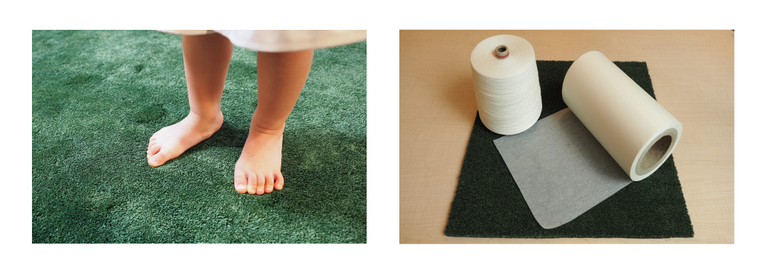 紙製人工芝「ペーパーターフⓇ」はバショウ科の植物であるアバカを原料とした紙からつくられた人工芝です。プラスチック特有のチクチクした感触がなく、柔らかくて肌触りが良いため素足でも快適にご使用いただけます。人工芝由来のマイクロプラスチックが問題視される中、毛足(パイル)部分にプラスチックを使わない「ペーパーターフⓇ」は、環境への負荷が低いといったメリットも挙げられます。