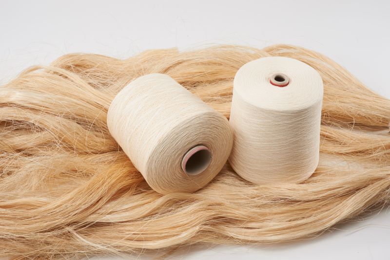 王子ファイバーが企画・製造する紙糸製品で、オーガニック認証(※1)を取得したエクアドル産アバカを原料に使い、製品自体も高い生分解性(※2)を持つ天然繊維です。繊維としての特徴は、他の繊維素材と比較しても軽量な素材となり、多孔質の構造から湿気を吸いやすく、乾きやすい性質に優れ、ドライな肌触りが続きます。織り方や編み方、組み合わせる素材によって、さまざまな風合いを生み出すことが可能です。