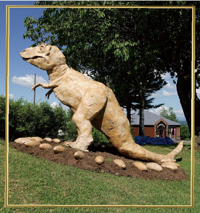 2024年に新潟で開催された「大地の芸術展」に出展した恐竜の野外作品。 設置日の6月30日撮影。