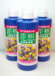 Hana-Omoi prolongs the lives of cut flowers. The seal-type Hana-Omoi possesses a life-prolonging agent applied to the back of the seal. All you have to do is to peel the seal from the separator and put it into a vase, which then enables the flower to last longer than usual. The product is available in liquid bottles as well as small packs containing the agent.