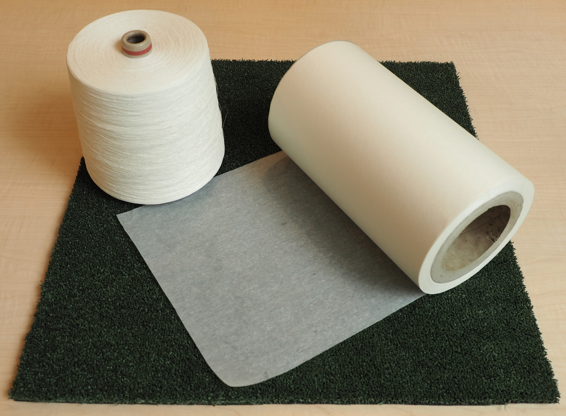 OJO⁺ペーパーターフはバショウ科の植物であるアバカを原料に使った紙から作られています。パイルと呼ばれる毛足部分がちぎれて海水中に流出しても、31日後には平均して69%が分解される*など、生分解性に優れます。プラスチック製の人工芝がマイクロプラスチックによる海洋汚染の一因と考えられる中、環境に配慮する施設・企業等で導入が進んでいます。