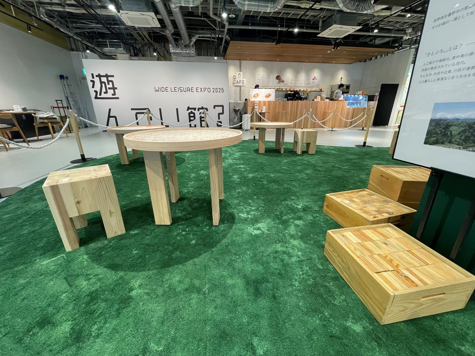 - OJO⁺ペーパーターフの敷かれた「遊んでい館?」内部の様子
